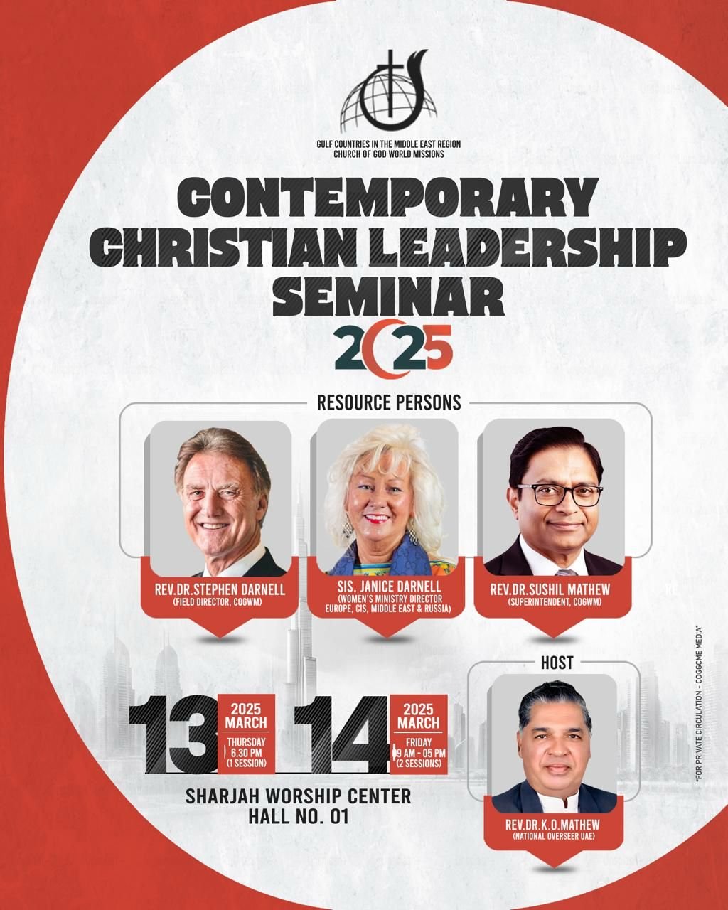 Official Press Release Contemporary Christian Leadership Seminar 2025 to be Held in Sharjah Contemporary Christian Leadership Seminar 2025 to be Held in Sharjah Sharjah, UAE – A Regional Leadership Seminar of Church of God in The Gulf Countries Read More » Pr Gladson Varghese February 5, 2025